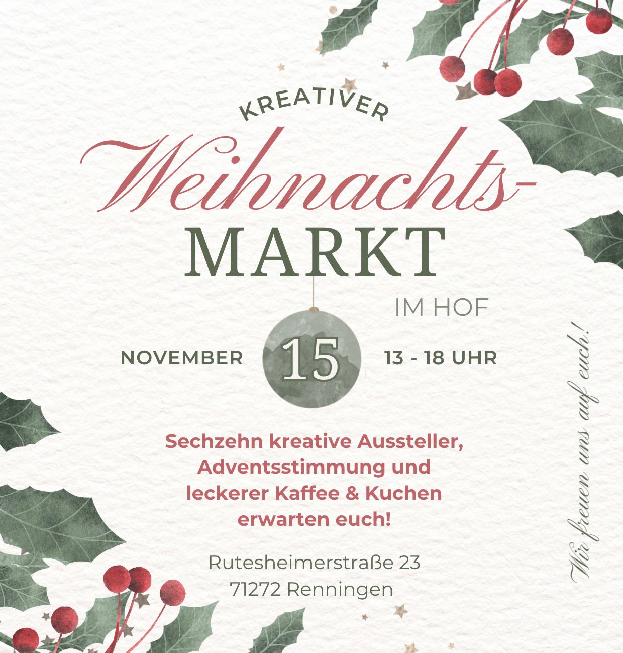 Leider darf der geplante weihnachtliche Hofmark nicht stattfinden. Einige meiner künstlerischen Gäste haben mit mir ein Konzept ausgearbeitet bei denen wir die Bestimmungen einhalten, und dir doch die Möglichkeit bieten ein bisschen Weihnachtsmarktluft zu schnuppern. An diesen Samstagen wird der kreative Hofalden durch folgende Künstler bereichert. […]